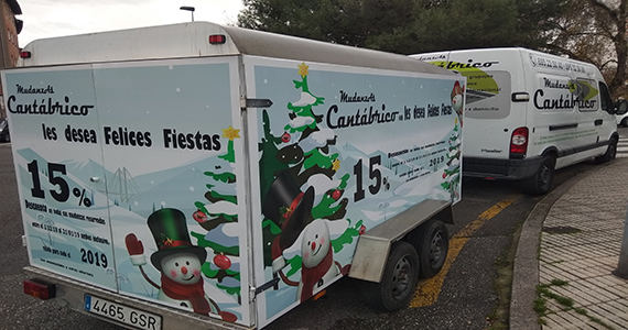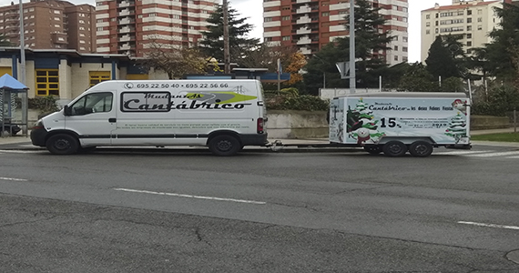 Foto de uno de uno de nuestros vehículos con remolque navideño.