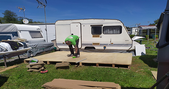 Foto de uno de nuestros operarios desmontando stands en la ciudad de Gijón.