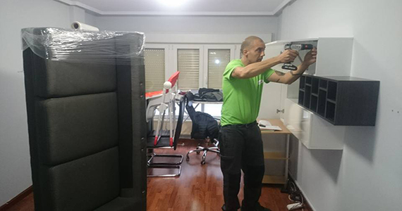 Foto de un operario desmontando muebles en una de nuestras mudanzas.
