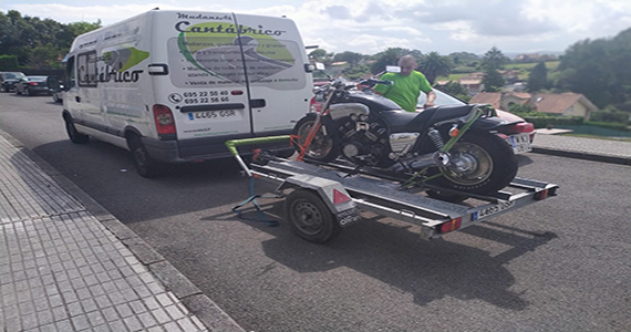 Foto de furgoneta y carro cargado con moto.